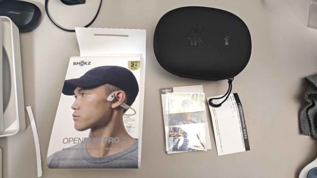 今回は、ShokzというメーカーのOpenRun Pro 2という骨伝導ヘッドホン。